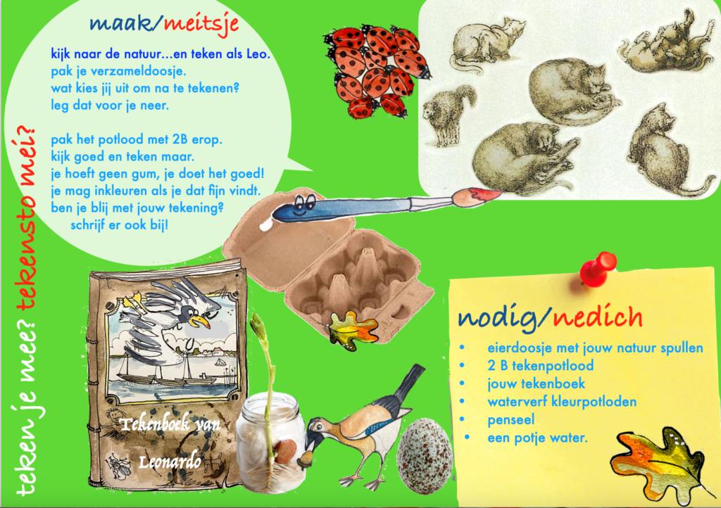 We gaan de leerlingen kennis laten maken met biomimicry (na-apen uit de natuur) aan de hand van een maakkist over Leonardo Da Vinci. Hij was al vanaf jongs af aan geïnteresseerd in alles wat in de natuur leeft. Bij het bedenken van zijn uitvindingen heeft hij dan ook goed naar de natuur gekeken. Leerlingen van de groepen 3 en 4 kruipen met deze maakkist in de huid van Leonardo Da Vinci.