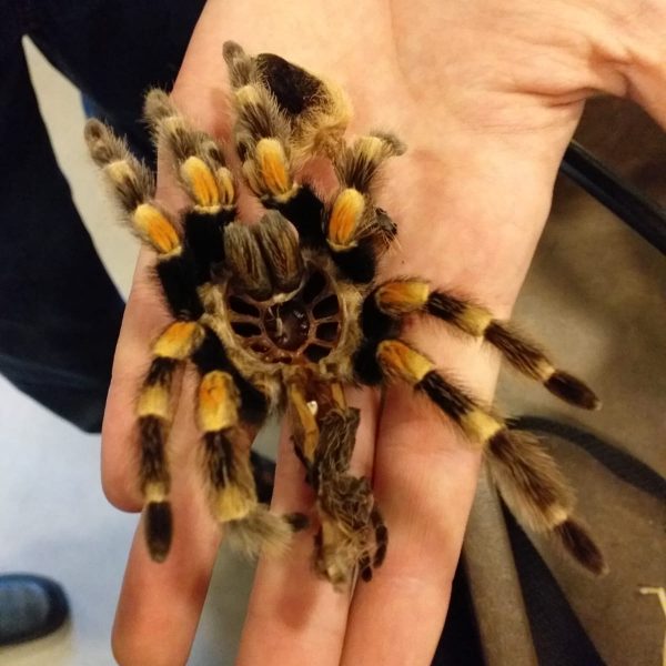 In de gifexpo zitten een aantal prachtige spinnen, neem bijvoorbeeld deze Mexicaanse roodknievogelspin. Hij kan tijden roerloos zitten, maar toch zit er best veel actie in dit dier, vooral als er een lekkere krekel in de buurt is.