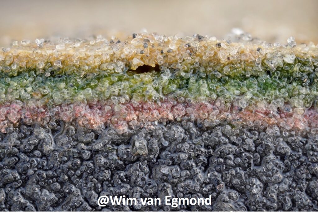We beginnen met een blik op de prachtig gekleurde lagen op het Groene Strand van Schiermonnikoog. We zoomen daarbij letterlijk in op de microbiële matten die groeien bij de variërende zoutconcentraties in fascinerende bioritmes. Daarna verplaatsen we ons naar vergelijkbare microbiële matten, maar dan bij een veel hogere zoutconcentratie op de stranden van het Franse Guérande. Daar ontstaan mysterieuze Fairy Rings’ op het oppervlak die een visueel opmerkelijk verschijnsel vormen met een microbiële basis. Tenslotte gaan we naar de Spaanse Zoutpannen. Hier kijken we naar het leven op de uiterste grens van extreem zoute omgevingen met één van de meest unieke vormen in de microbiologie.
