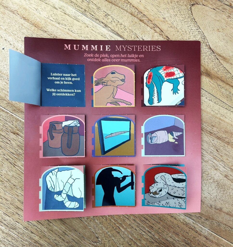 Bezoek bijvoorbeeld de expositie Mummie Mysteries aan de hand van het nieuwe familieprogramma ‘Zoek de plek en ontdek’. Kinderen krijgen een kaart met verschillende plaatjes, die in de expo terug te vinden zijn. Elk plaatje is een luikje, dat een vraag of opdracht bevat. Zo gaan ze schimmen zoeken, uitvinden hoe mummiedieren ontstaan, het Dokter Bibberspel spelen, balsemvloeistoffen ruiken en ontdekken welke mummies vals zijn.
