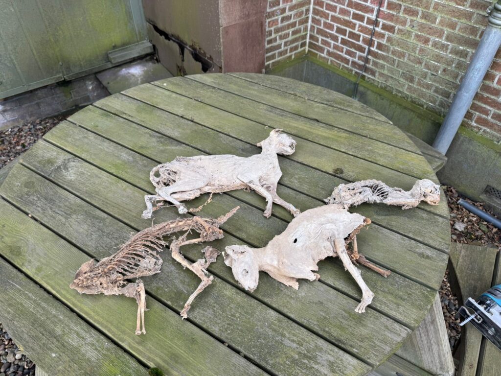 Nog niet zo lang geleden doken er mummiedieren op in Sexbierum, een dorpje dat boven Harlingen ligt. In 2025 werd tijdens een verbouwing van een boerderij uit 1902 een bijzondere vondst gedaan. Onder de vloer van de opkamer lagen vijf gemummificeerde huiskatten. Omdat zo veel katten daar niet per ongeluk terechtkomen, lijken ze er bewust te zijn neergelegd.