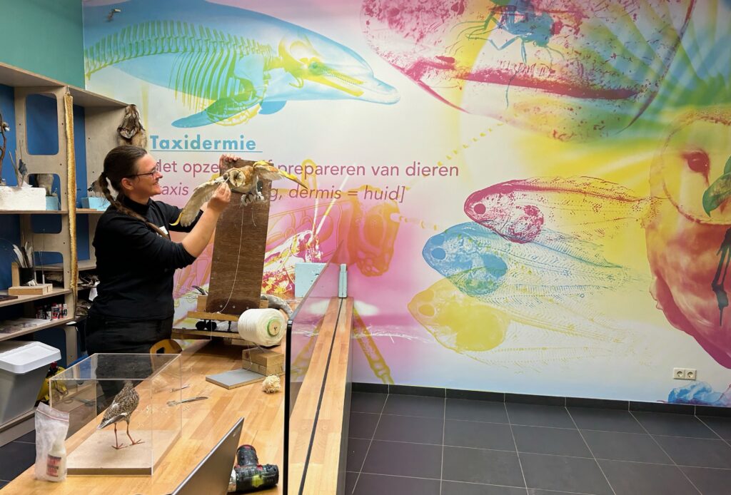 Vanaf de meivakantie is het geheel vernieuwde Open Atelier open. In de werkplaats van de preparateurs kunnen bezoekers live meemaken hoe het opzetten van een vogel of zoogdier in zijn werk gaat. En dat is een fascinerend proces waar houtwol aan te pas komt, veel draad, naalden en een föhn. Langzaam zie je hoe een op het eerste gezicht verfomfaaid velletje omgetoverd wordt in een adembenemend mooi ijsvogeltje, een indrukwekkende buizerd of een grappige mol.